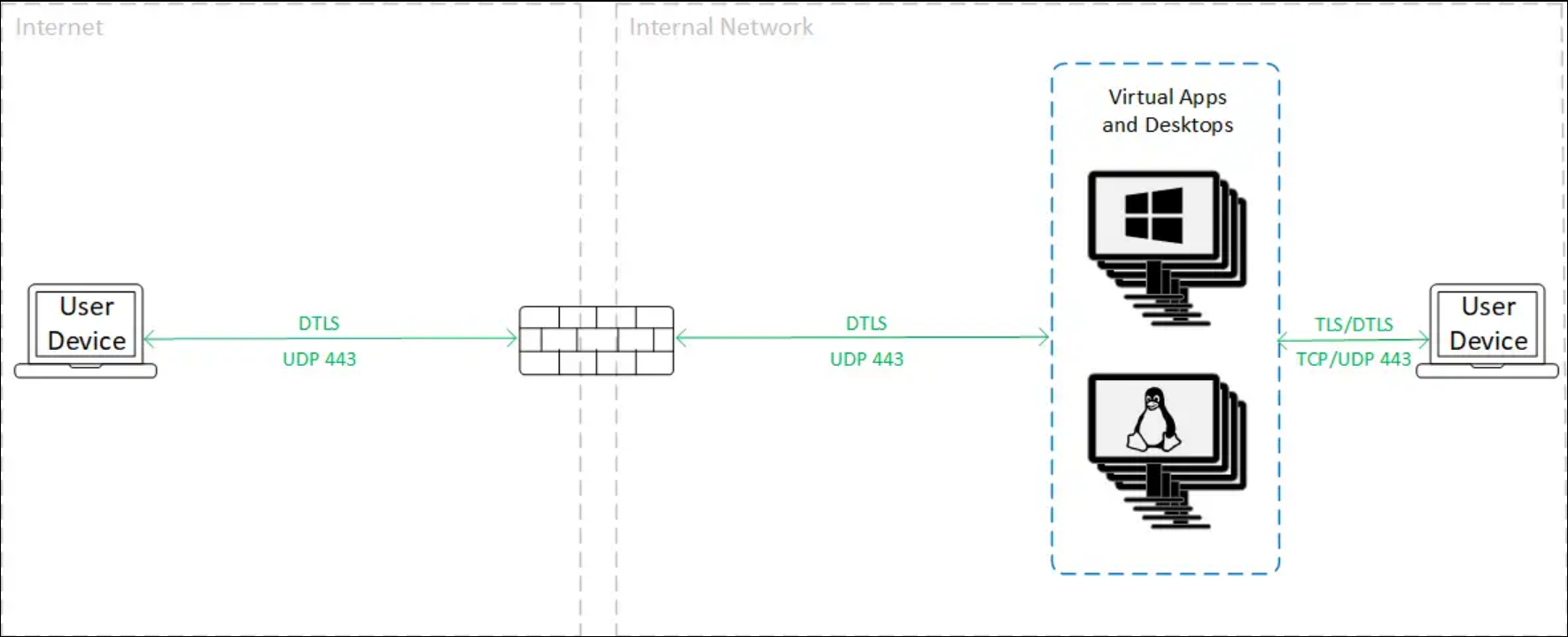 When using VDA TLS/DTLS encryption, traffic is encrypted as shown in the following diagram.